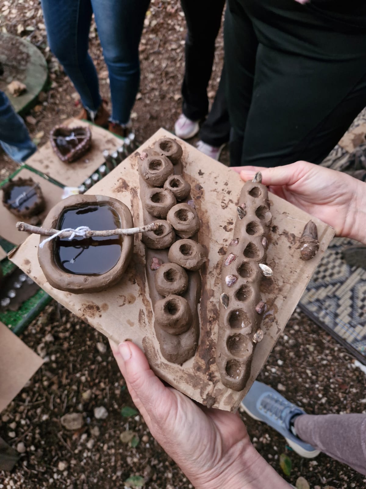 תכני ההשתלמות בנויים סביב מעגל השנה – עונות, חגים וימי שיא – ונבחנים כולם מנקודת מבט סביבתית וחווייתית. במפגש הראשון עסקו המשתתפות והמשתתפים ביצירה מחומרים טבעיים: אדמת העמק עורבבה עם נייר בשימוש חוזר ומים, ונוצר חומר פיסולי שבאמצעותו הוכנו יצירות לקראת חג החנוכה – סביבוני אדמה, מנורות שמן, בתים מעוצבים לנרות משעוות דבורים ואף חנוכיות.