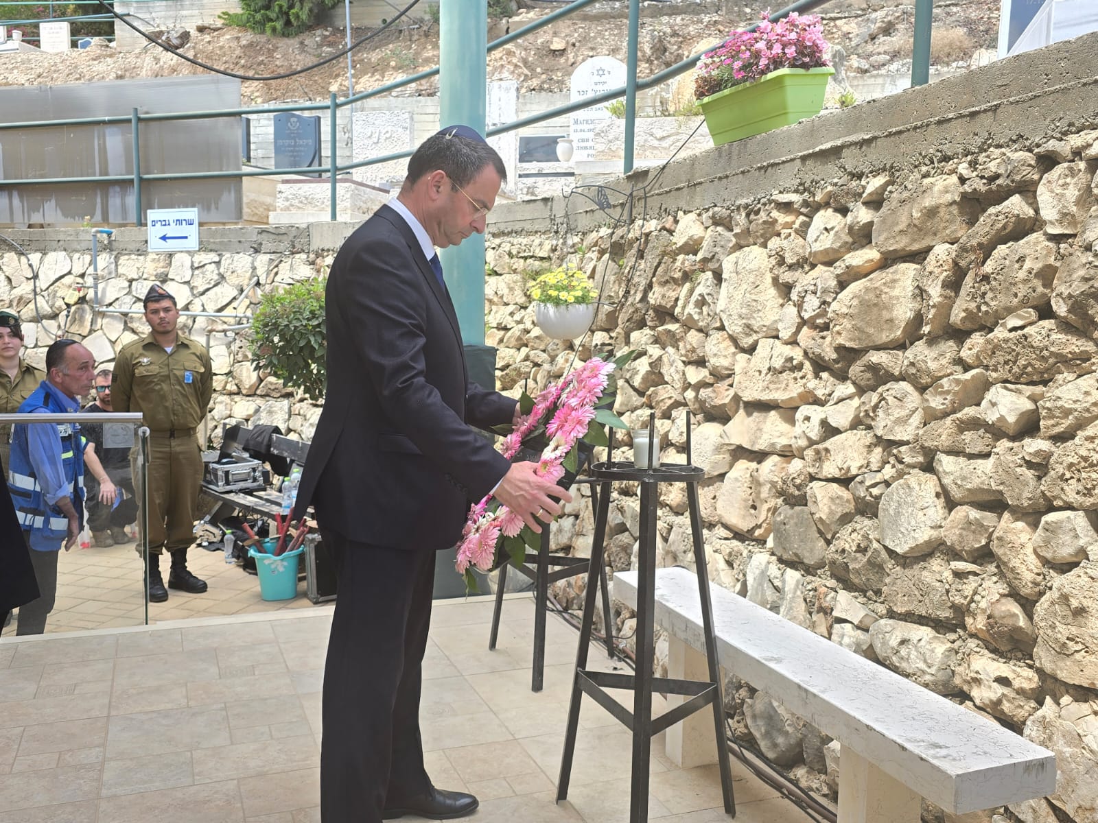 טרם תחילת הטקס המרכזי הגיע, ראש העיר, רומן פרס, לכיכר "עד עולם" והניח זר לזכרם של הנופלים והנופלות במלחמת 'חרבות ברזל', והנרצחים והנרצחות בטבח פסטיבל נובה.