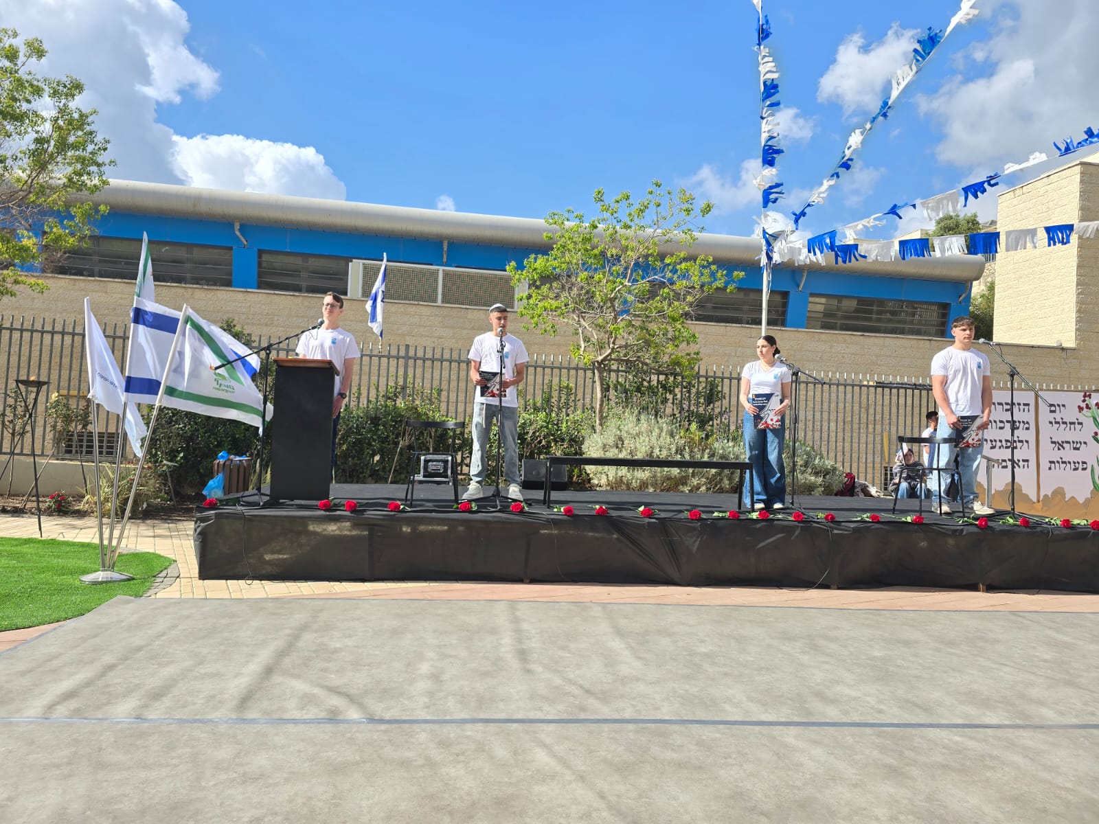 מנהל התיכון, דודי יוסף, אמר שערכים של עוז וענווה, מנהיגות והובלה שזורים אצל הנופלים ושמורשתם כאן וקרא לכולם ללמוד מהם ציונות, אחריות ורעות ולהוקיר להם תודה. למשפחות הבטיח דודי שכולנו מתחייבים להמשיך, לזכור ולספר, להיות ראויים למסירותם ולהוות עבורם מקום של חיבוק ונחמה. בטקס הנחת הזרים הניחו זר בשם המשפחות אחיו של איתי גליסקו הי"ד, אורי, ואימו של אופיר ציוני הי"ד, נגה. יעקב גבאי, אביה של שני גבאי ז"ל אמר קדיש. בתום הטקס נפגש ראש העיר עם בוגרות ובוגרי התיכון שמשרתים כיום בצה"ל ואמר להם שהוא גאה בהם והעיר כולה גאה בהם והודה להם על שירותם הצבאי ועל הכבוד שהם מבאים לעיר. הטקס בבית העלמין בהנחיית חנן כספי החל בשתי דקות דומייה ובהדלקת הלפיד ע"י חייל צה"ל.