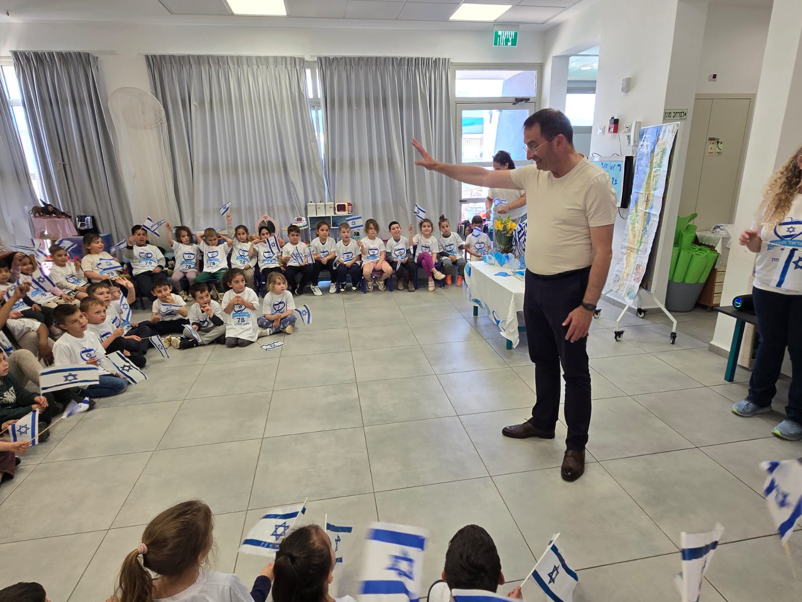 לקראת יום העצמאות ה – 78 למדינת ישראל, יום הולדת 76 ליקנעם וסיום המלחמה עם איראן (לפחות באופן זמני) הגיעו כמיטב המסורת ראש עיריית יקנעם, רומן פרס וצוות אגף החינוך לביקור בכל גני הילדים בעיר, נפגשו עם הילדים והצוותים ואיחלו להם חג עצמאות שמח.